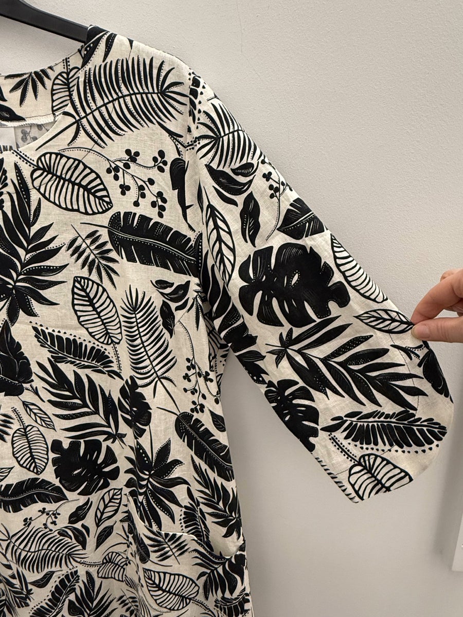 Upea mekko, jossa on kauniisti muotoiltu, hieman tulppaanimainen siluetti. Malli laskeutuu pehmeästi ja tuo asuun rennon mutta näyttävän ilmeen. 3/4-pituiset hihat ja O-pääntie tekevät kokonaisuudesta tasapainoisen ja helposti käytettävän. Mekon etupuolella olevat taskut tuovat ilmeeseen persoonallista ilmettä ja lisäävät käytännöllisyyttä. Kyseessä on suomalaisen yrityksen tuote, joka valmistetaan paikallisesti Hyvinkäällä – laadukas ja vastuullinen valinta, jossa kotimainen osaaminen näkyy ja tuntuu.